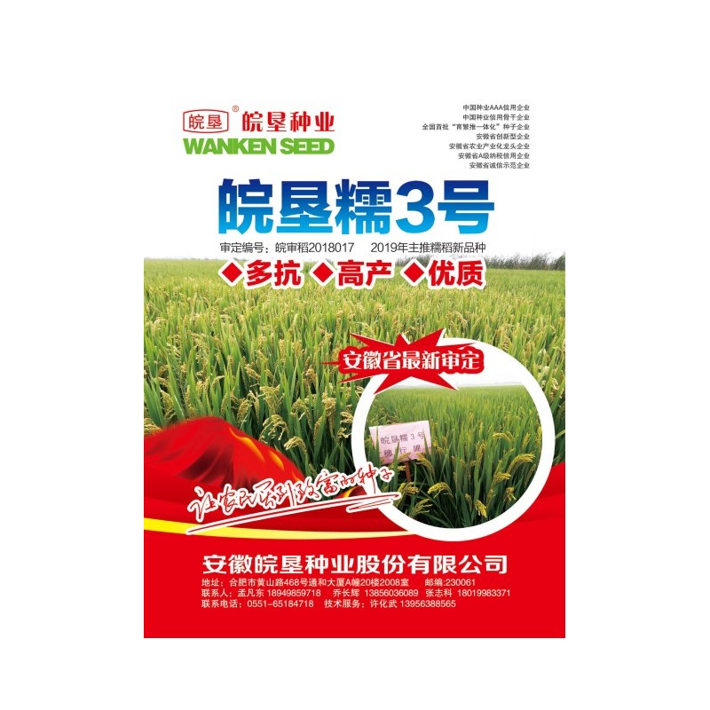 審定編號:皖審稻2018017